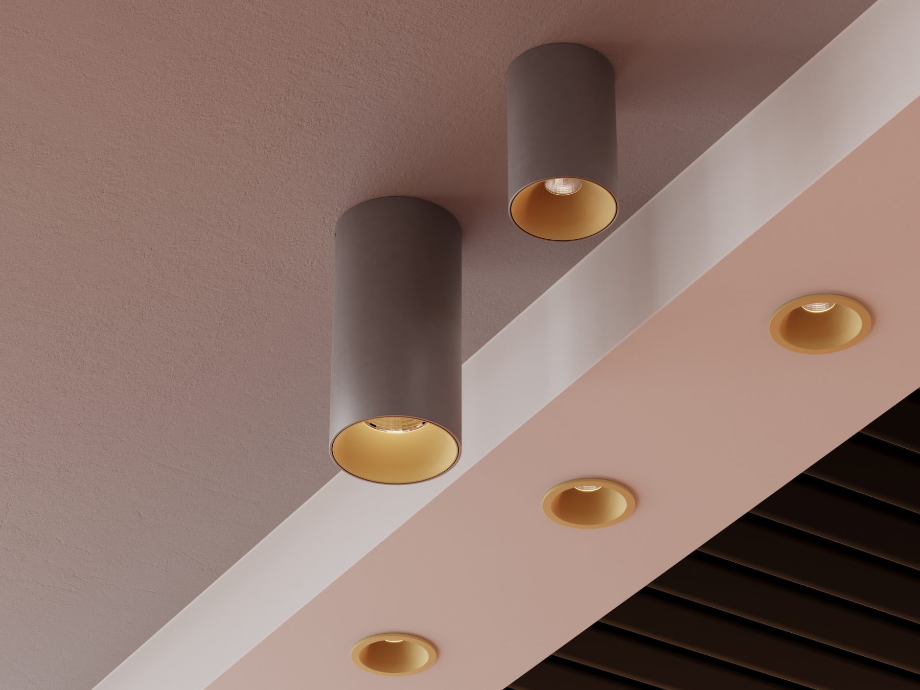 • Integraciones: A partir de una fotografía real de un espacio arquitectónico, integramos luminarias igualando la perspectiva, iluminación y simulando la emisión de luz del producto.