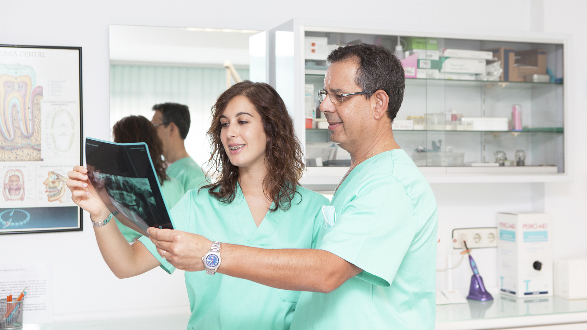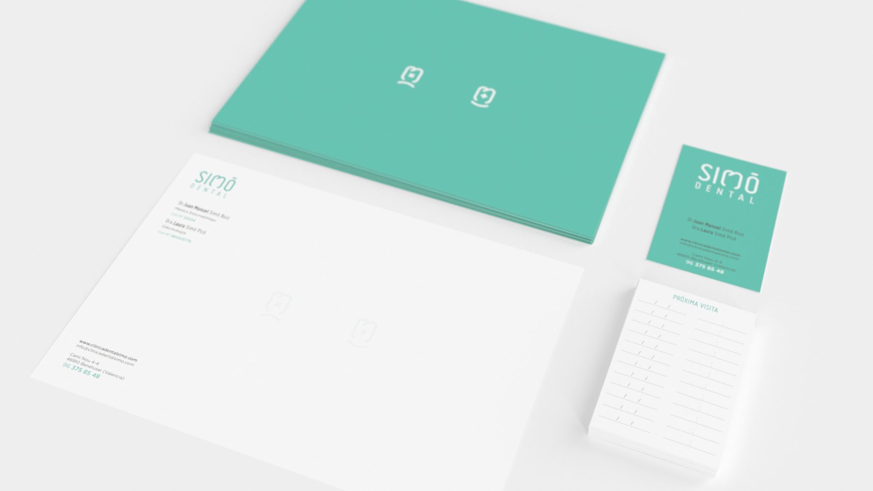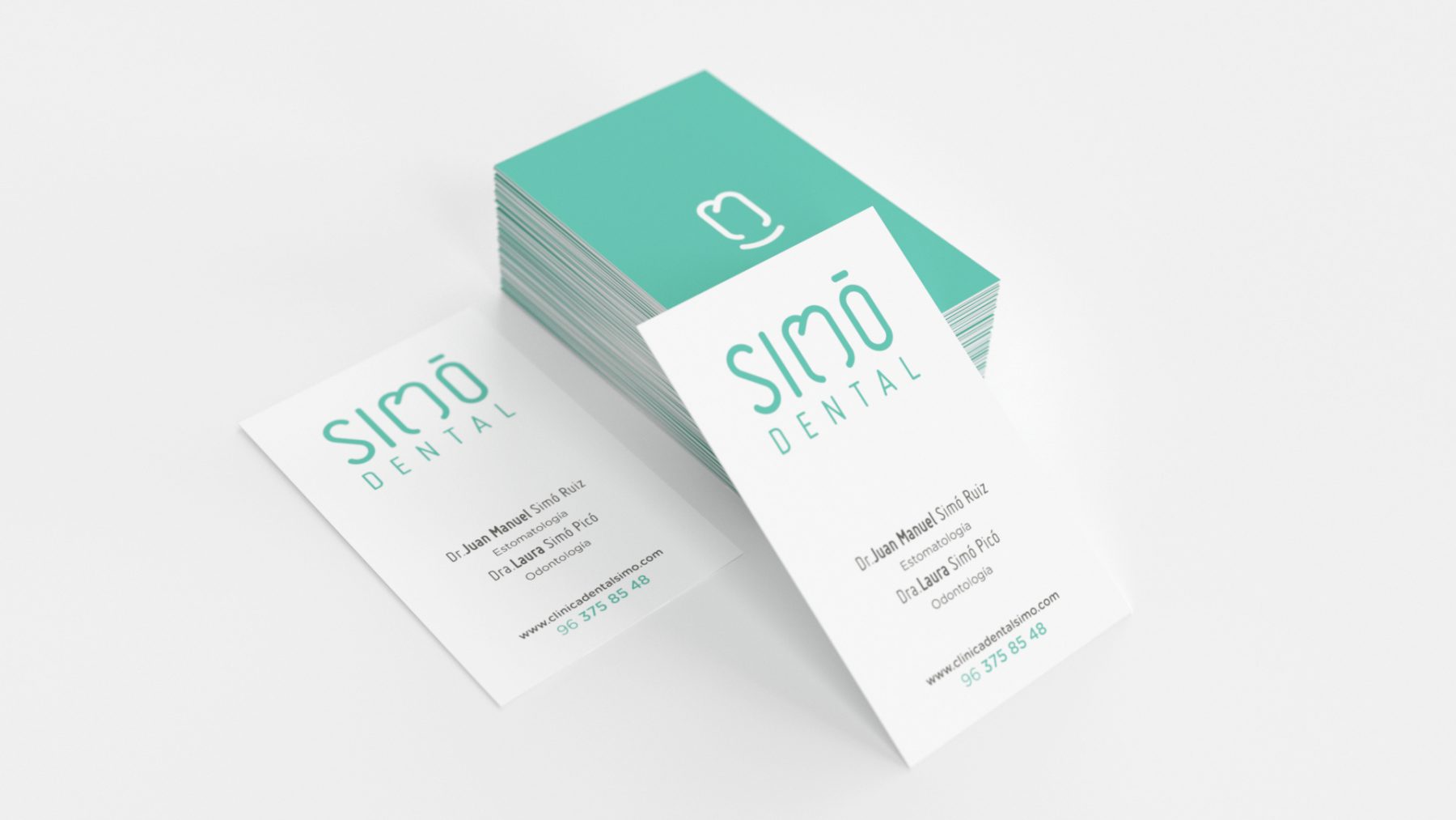 Diseño gráfico de la imagen corporativa, diseño web e imagen fotográfica para una clínica dental. Es un diseño amable sin aristas basado en el color verde propio de la medicina.